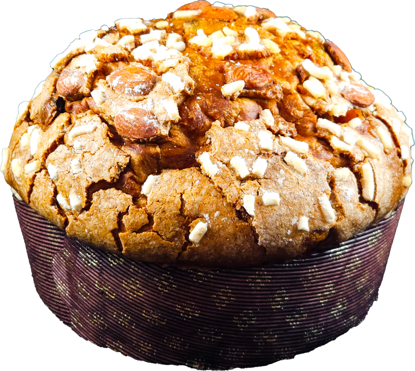 Panettone Artigianale Classico con arance candite, uva sultanina e glassatura alle mandorle.